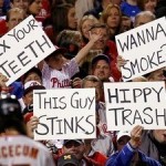 While the Philly crowd held signs reading, “Hippy Trash”, ”Wanna Smoke?” and “Fix Your Teeth” Ross responded with two shots over the left field wall.