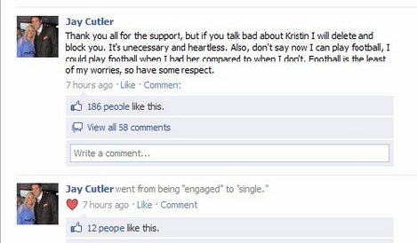 Cutler confirmed the dumping through his Facebook page when he changed his relationship status on the social website from being “engaged” to “single” as shown in the image here.