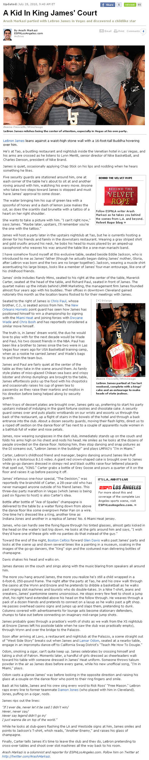Below is an image of the controversial LeBron James story detailing his trip to Las Vegas. ESPN has since yanked the story. Here’s their statement: