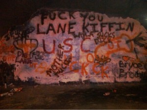 Feeling deserted, as they should have, the fans had a few mattress-burning parties and defaced several Knoxville “monuments” like the one pictured here. Once the tears dried up, Tennesseans began moving on, until this latest incident with the Titans.
